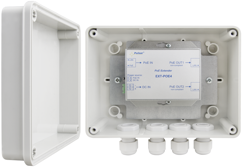 EXTENDER POE W OBUDOWIE HERMETYCZNEJ DO 2 KAMER IP Pulsar EXT-POE4H 48V