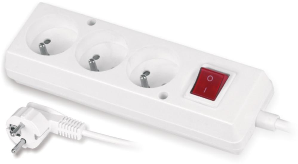 Przedłużacz z trzykrotnym gniazdem z wyłącznikiem 3x2p+Z 10A 1,5m biały