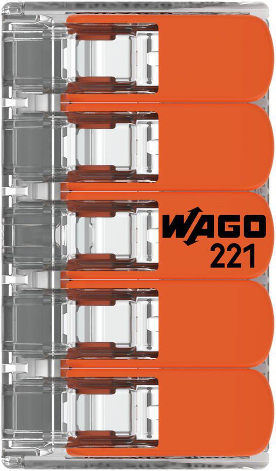 ilość Szybkozłączka uniwersalna LINKA/DRUT 5x 0,2-4mm2 WAGO 221-415 (Paczka 25szt.)