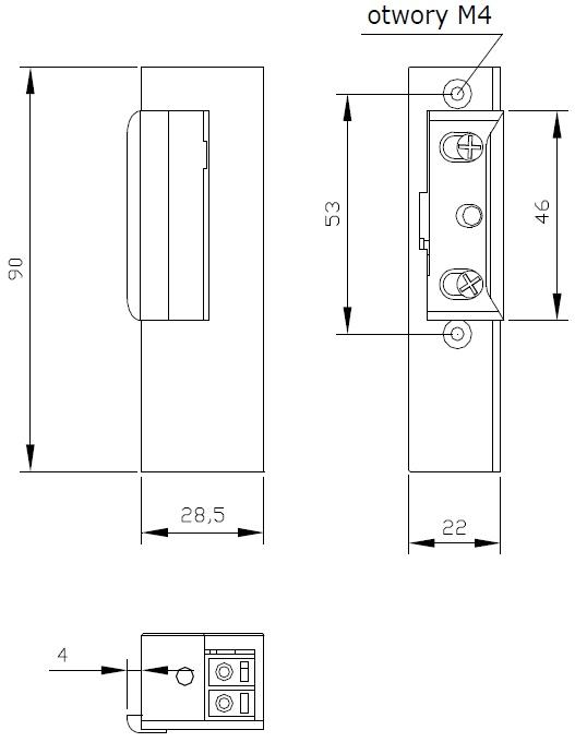 - Wymiary zaczepu: 22 x 28 x 90 mm
